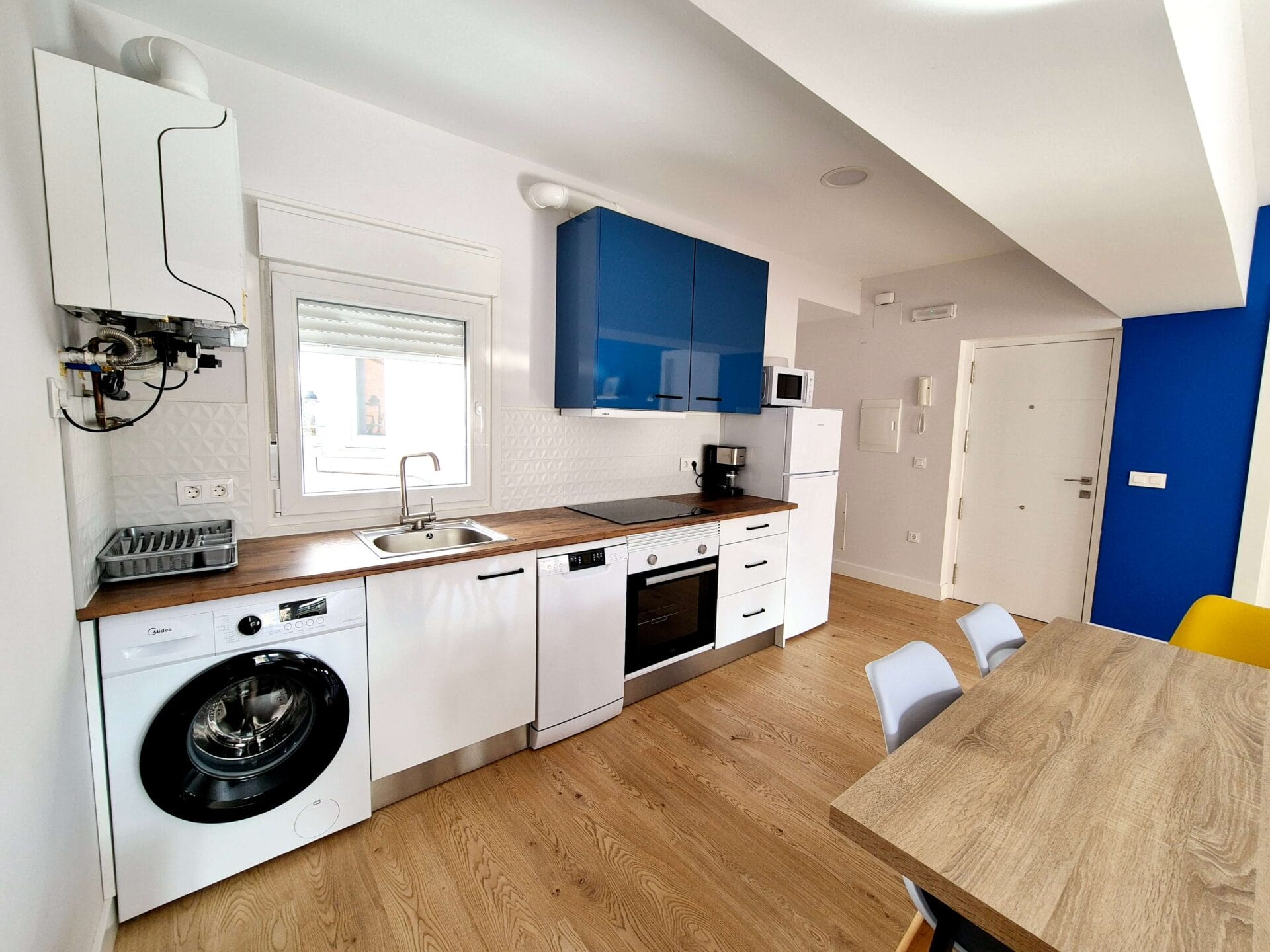 Este piso junto con el piso 12 y 14 está situado en el mismo edificio, con lo que se pueden alojar grupos grandes ocupando los dos o tres apartamentos.